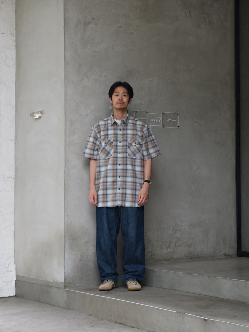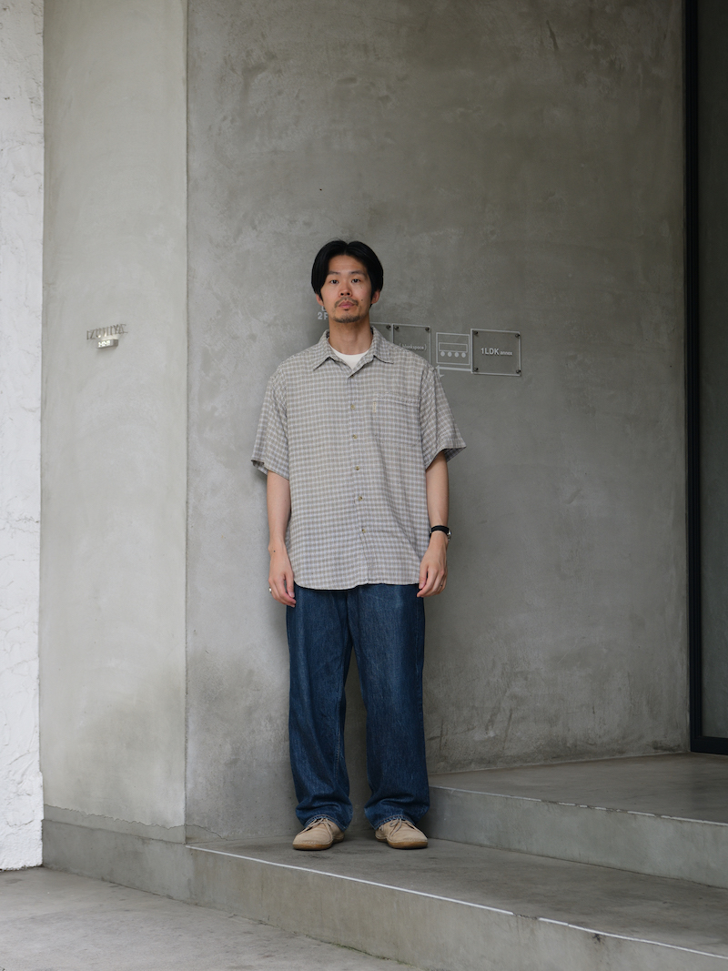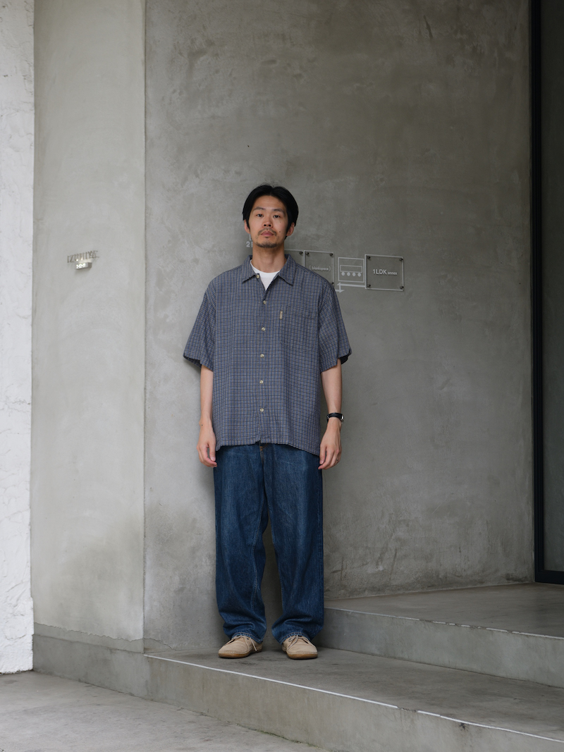 何故、古着の取り扱いを始めたのか、ですが、その話の前にまず祐天寺SUPERMARKETの店主、及びRELAX FITのデザイナー香月氏はあまりシャツというアイテムをオリジナルで作りません。シャツを全く着ないわけではなく、基本的に古着のシャツを着まわしており、自身で作る必要性をあまり感じないからみたいです。