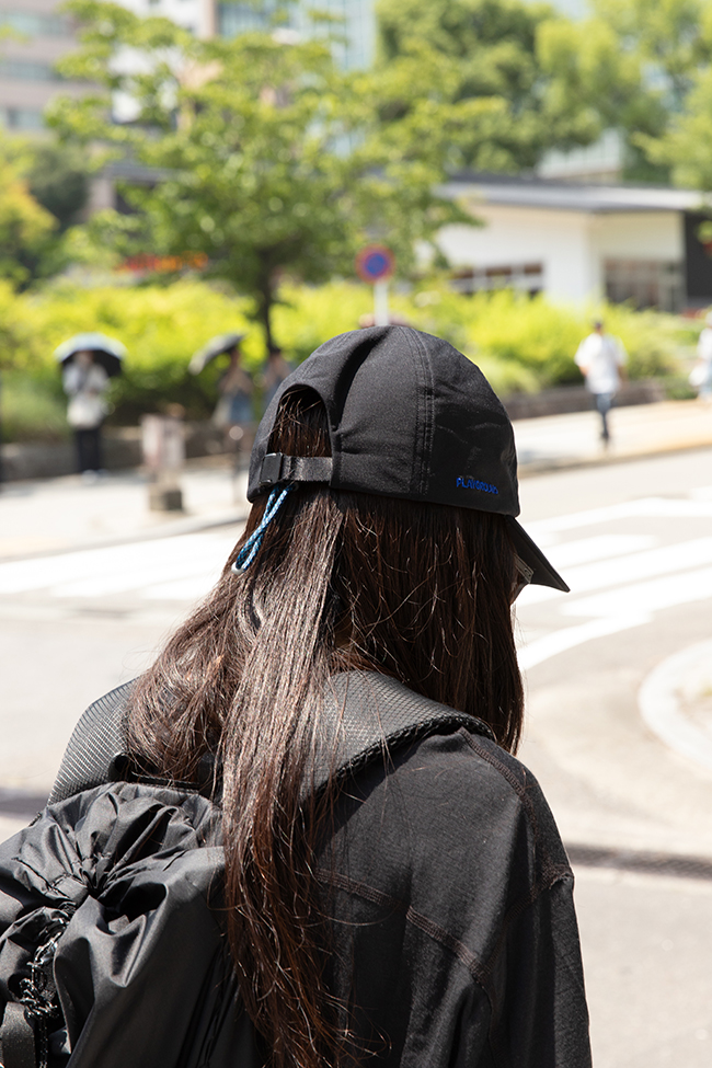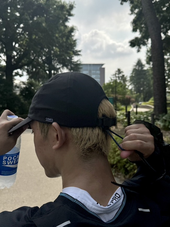 さらに、バッグには、COMESANDGOESのキャップに通常ついているアジャスターに加え、ドローコードのようなものも付属。