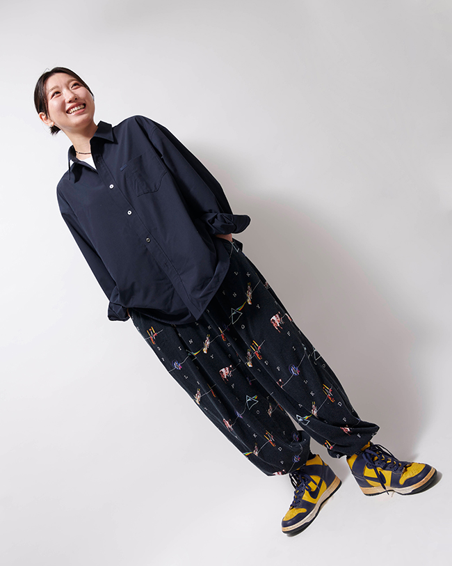 反面、カジュアルさとの対比として、スラックスなんかに合わせても面白そうだと思います。