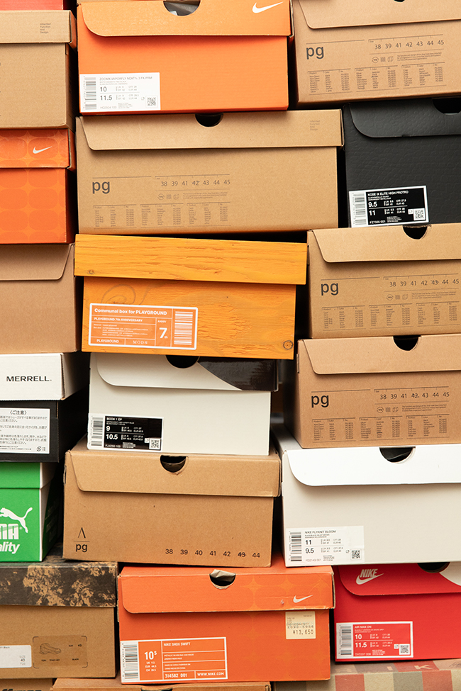 それからもちょこちょこ遊びに来てくれて、靴も何足か買っていただいているだけではなく、PLAYGROUNDが出した本まで買ってくれていたりと、非常にお世話になっております。