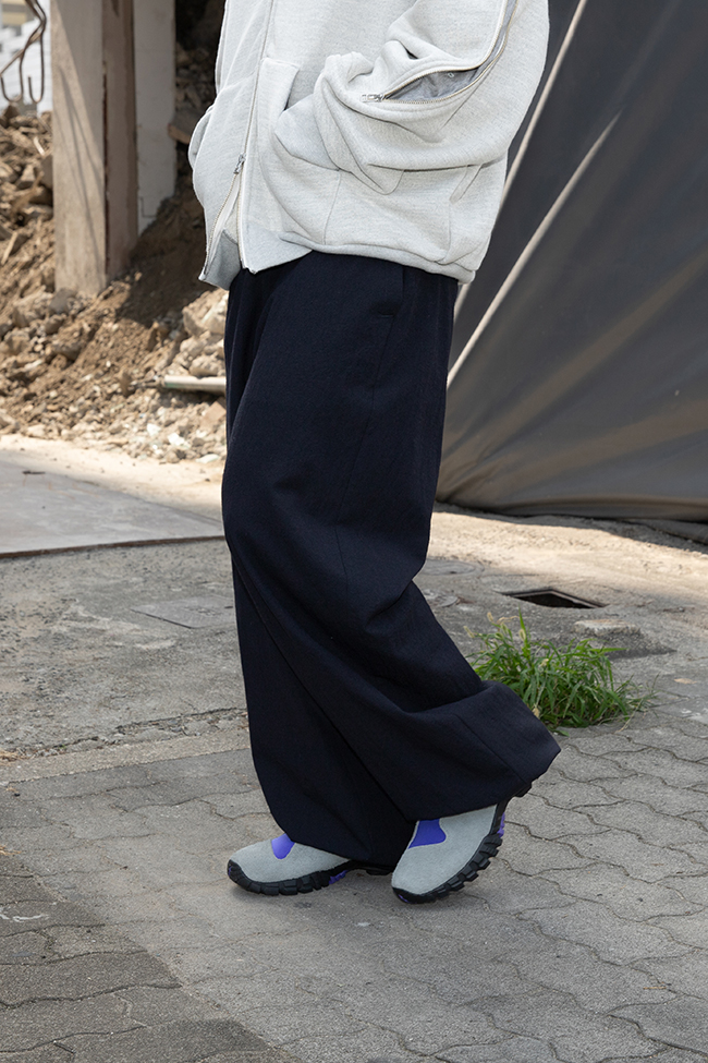 今回合わせたのは、ネイビーのパンツ。