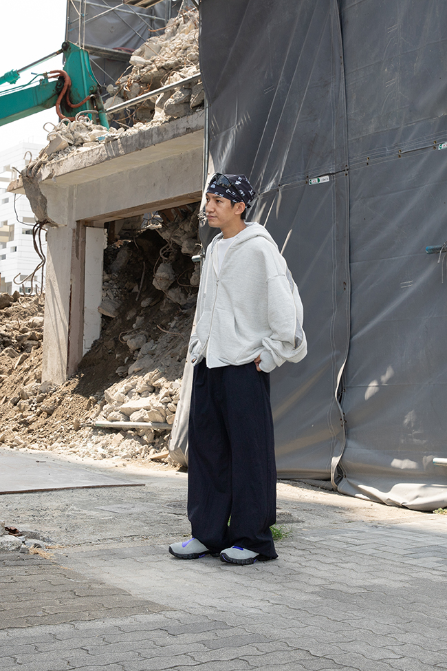 まず思い浮かんだのは、スウェットとの合わせ。