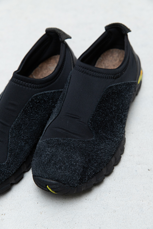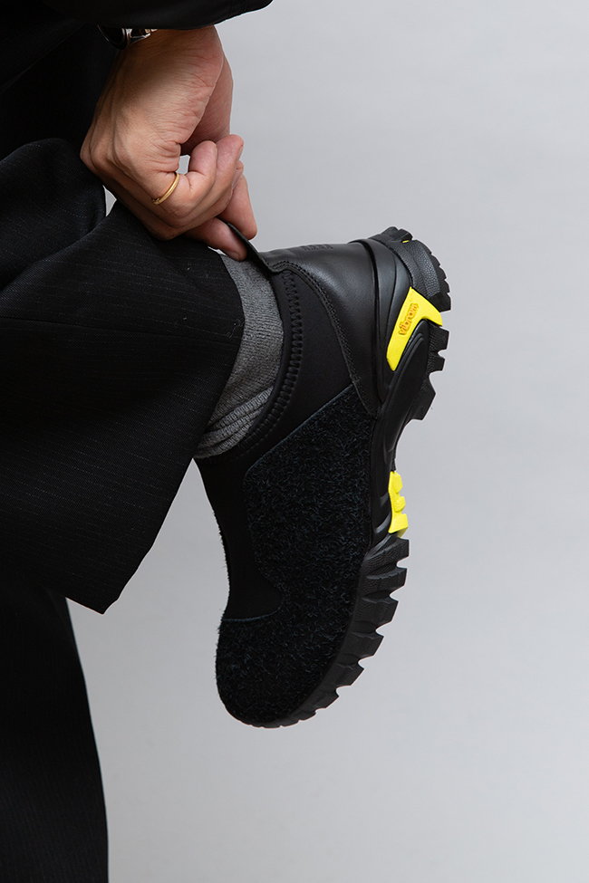 履き口周りの、フィットに関わる箇所には伸縮性のあるネオプレーンを配置。