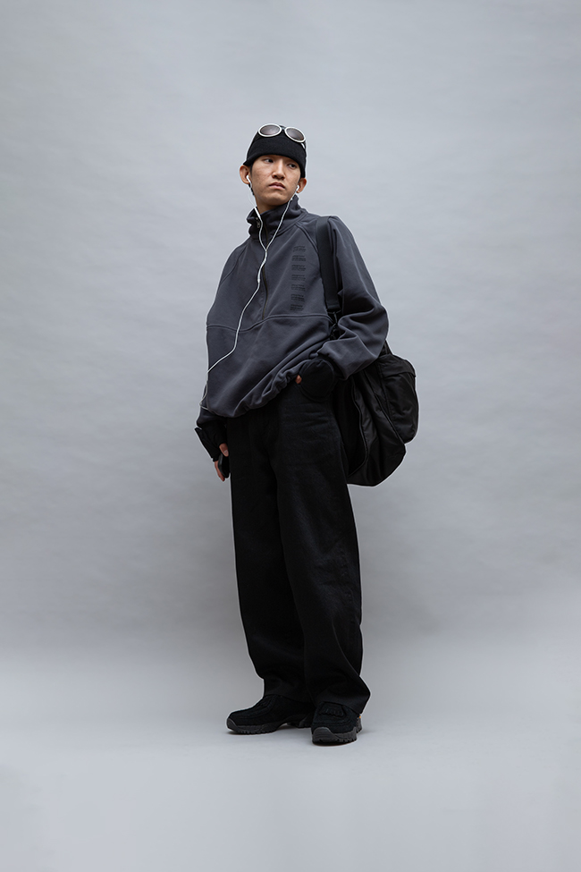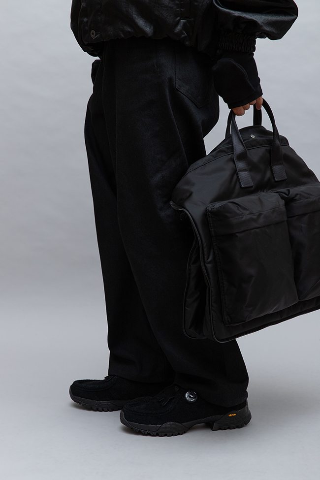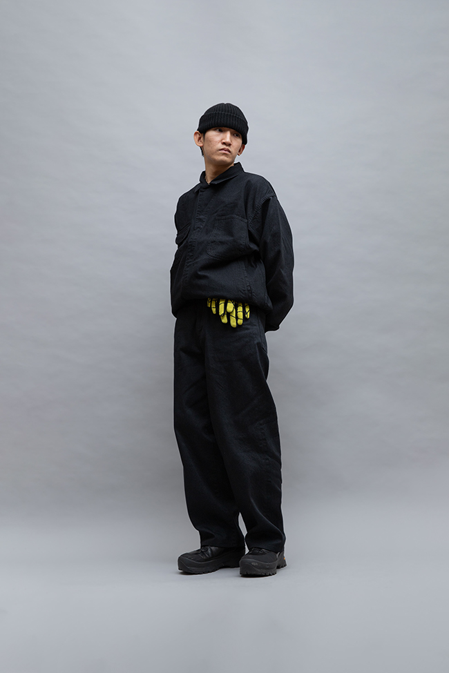 上記のKPOCKET PANTSのポケットディテールを継承した、ルーズフィットのベイカーパンツ型の一着です。