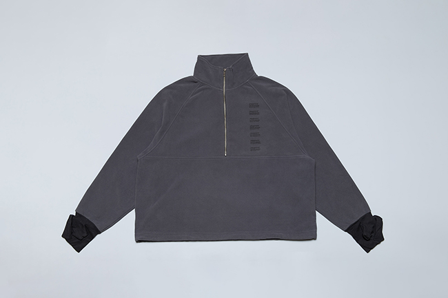 今までのフリースと違い、首元をハーフジップに変更。だけでなくパターンも変更しており、ラグラン仕様でアームホールも広げ、裾にドローコードも装備。