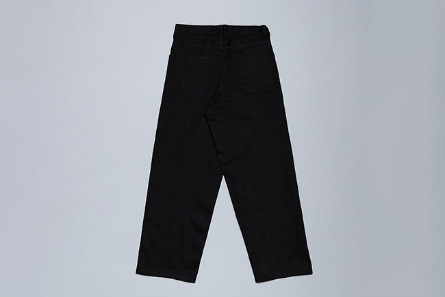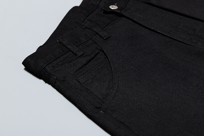 形はいわゆる5ポケットのパンツですが、サイドポケットを広めにし、コインポケット位置を少し下げ、その上にループを追加。